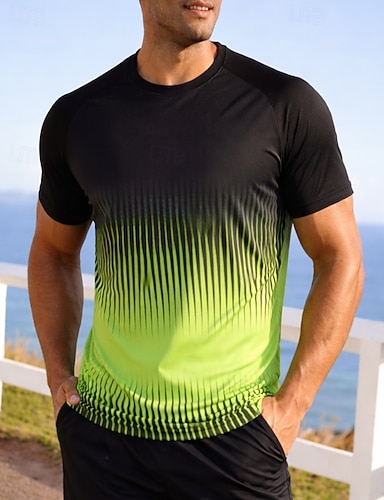 Herren Farbverlauf Gestreift Lauf-T-Shirt Kompressionsshirt Sportshirt Sporttop Sommer Kurzarm Schnelltrocknend Feuchtigkeitsableitend Atmungsaktiv Fitnesstraining Gehen Joggen Blau Weiß Grün