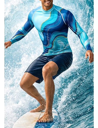 Herren Anti UV Shirt Surfanzug T-Shirt zum Schwimmen Geometrisch Farbverlauf UPF50+ UV Schutz Schnelltrocknend Langarm Bademode Schutz gegen Hautausschlag Surfen Kanufahren Strand Sommer