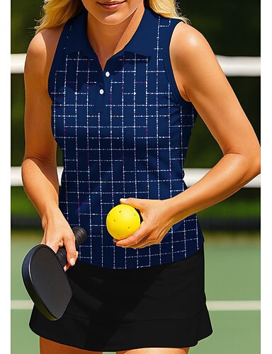Damen Geometrisch Kariert Kontrastfarbe Workout-Tanktop Sporthemd Golf-Poloshirt Ärmellos Sportlich UPF50+ UV-beständig Trainer Tanzen UV Schutz Pilates Cheerleader-Kostüme Volleyball Umschlagkragen