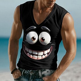 Herren 3D Lustige Emotes T Shirt Ärmellos T-Shirt 3D-Druck V Ausschnitt Hemd Tropisch Outdoor Urlaub Hawaiianisch Schwarz 1 Schwarz 3 Schwarz 2 Sommer Frühling Bekleidung S M L XL XXL XXXL