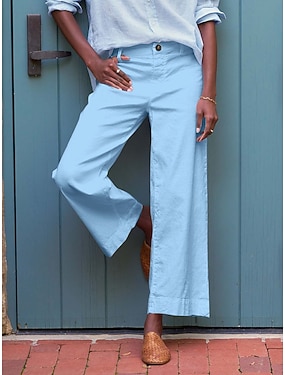 Damen Kunstbaumwollleinen Weites Bein Chinos Sommerhose Urlaub Mode Streetwear Wadenlang Hohe Taille Einfach Tasche Bequem Weich Unelastisch Outdoor Straße Gelb Sommer Frühling Herbst Lässiger Schnitt