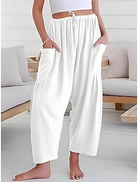 Damen Kunstbaumwollleinen Hose Sommerhose Baggy-Hosen Urlaub Basic Lässig Knöchellang Hohe Taille Einfach Tasche Elastischer Bund Komfort Weich Atmungsaktiv Dehnbar Strand Ferien Blau Schwarz Wei