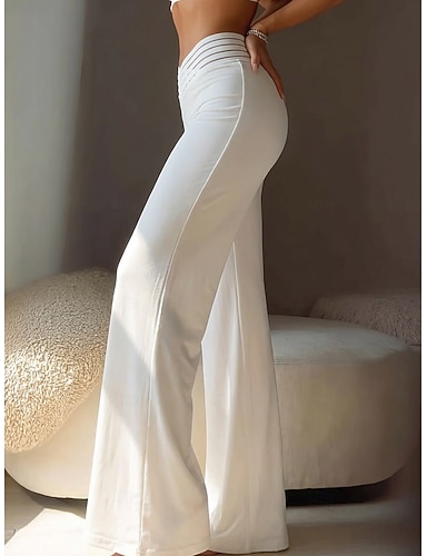 Damen Weites Bein Hose Anzughose Urlaub Mode Streetwear Volle Länge Hohe Taille Einfach Weites Bein Elastischer Bund Komfort Weich Atmungsaktiv Dehnbar Täglich Outdoor Büro Blau Schwarz Weiß Gelb