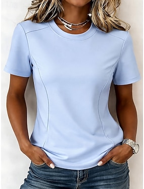 Damen T Shirt T-Shirt Einfach Mode Stilvoll Basic Kurzarm Rundhalsausschnitt Normale Oberteile Täglich Ausgehen Wochenende Blau Schwarz Weiß Rosa Purpur Sommer Frühling