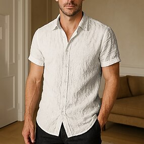 45 % Leinen Herren leinenhemd Popover-Shirt Sommerhemd Strandhemd Weiß Rosa Beige Kurzarm Glatt Kargen Sommer Outdoor Täglich Bekleidung