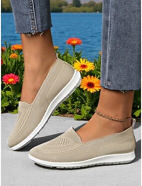 Damen-Sneaker zum Hineinschlüpfen aus Flyknit – leichte, atmungsaktive Freizeitschuhe zum Spazierengehen, Einkaufen und für den Urlaub