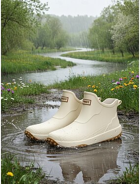 Beige Damen-Regenstiefeletten – wasserdichte Stiefeletten mit rutschfester Sohle | minimalistisches, stilvolles Design für Spaziergänge an Regentagen, Besorgungen im Freien, Parkbesuche und den Alltag