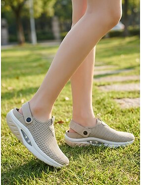 Beigefarbene Damen-Keilschuhe – bequeme Slipper mit Plateau für den Alltag und die Sommerreise