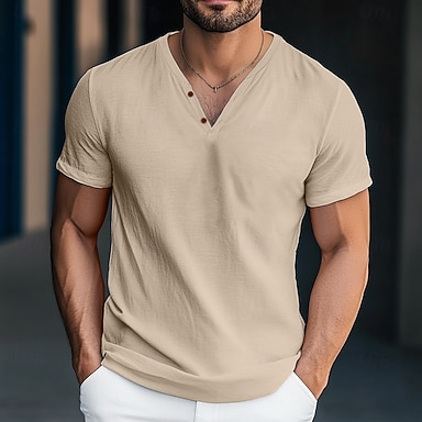 Herren Henley Hemd T-Shirt Kurzarm Einfarbig Einfach Mode Designer Basic Knöpfe V Ausschnitt Urlaub Straße Lässig Sommer Dunkelgrau Weiß Blau Henley T-Shirt