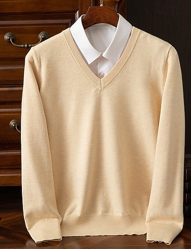 Herren Pullover Lässiger Pullover Strickpullover Gerippt Stricken Normale Oberteile Gestrickt Einfach V Ausschnitt Mode Lässig Urlaub Alltagskleidung Bekleidung Herbst Winter Kamel Wein S M L