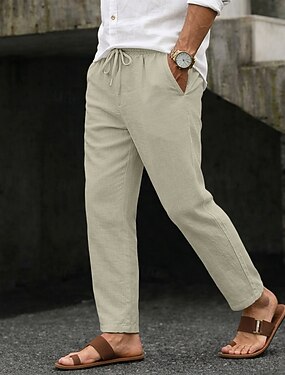 Herren Leinenhose Hose Hosen Sommerhosen Kordelzug Elastische Taille Gerade geschnitten Glatt Komfort Atmungsaktiv In voller Länge Outdoor Casual Täglich Modisch Retro Vintage Beige