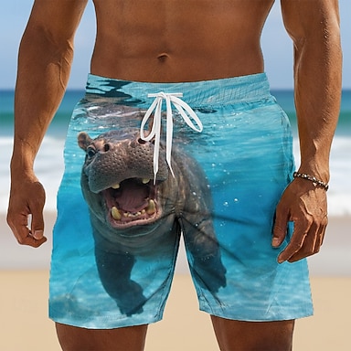 Herren Tiermotiv Nilpferd Verschluss Badehosen Badeshorts Boardshorts Mittlere Taille Lustig Hawaiianisch Strandurlaub Seitentaschen Netzfutter Elastischer Kordelzug in der Taille Designer Bekleidung