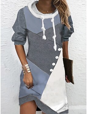 Damen Kapuzenkleid Mini Kleid Wickelkleid Shift Kleid Party Lässig Boho Outdoor Zuhause Ausgehen Regulär Passform Grafik Geometrisch Langarm Kapuze Pink Blau Grün Grau Frühling Herbst Winter