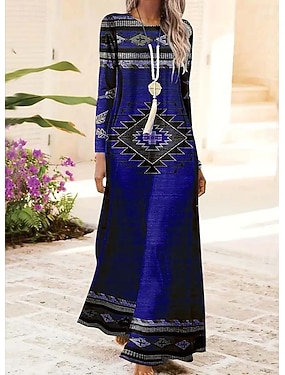 Damen Maxikleid Shiftkleid A Linie Kleid Party Lässig Boho Täglich Date Ausgehen Normale Passform Batik Stammes Langarm Rundhalsausschnitt Rote Blau Purpur Grün Frühling Herbst Winter