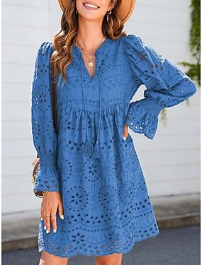 Damen Minikleid Boho-Kleid Spitzenkleid Weißes Kleid Urlaub Vintage Lässig Täglich Outdoor Urlaub Lässiger Schnitt Einfarbig Dreiviertelarm V Ausschnitt Blau Weiß Gelb Rosa Sommer Frühling