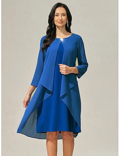 Damen-Hochzeitsgastkleid, schlichtes Kleid, Midikleid, Spitze, Chiffon, Patchwork, lässig, Rundhalsausschnitt, 3/4-Ärmel, Cocktailkleider, formelle Kleider, Farbe Blau