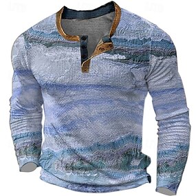Herren Grafik Farbblock Waffel-Henley-Hemd Lässiger Stil Klassicher Stil Langarm 3D-Druck Mode Designer Basic Täglich Outdoor Frühling & Herbst Blau Braun Grün Grau Henley Henley T-Shirt