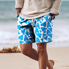 Herren Herz Badehosen Badeshorts Boardshorts Mittlere Taille Urlaub Hawaiianisch Resort-Stil Urlaub Ferien Strand Kordelzug mit Mesh-Futter Elastischer Bund Designer Bekleidung