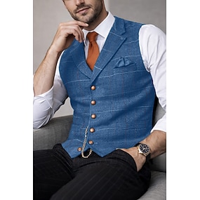 Herren-Tweedweste mit fallendem Revers, modisch für den Frühling, sechs Knöpfe, Vintage-Stil, bequem, schlicht, einreihig, V-Ausschnitt, normale Passform, grün, khaki, blau, hellgrau, dunkelgrau