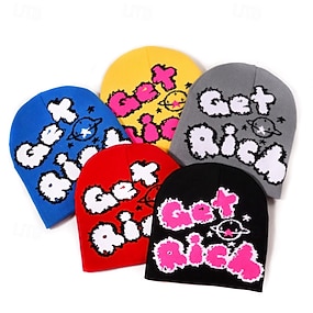 Herren Unisex Beanie Mütze Wintermützen Beanies Strickmütze Winter Beanie Schwarz Gelb Acrylfasern Gestrickt Gemütlich Alltagskleidung Ausgehen Buchstabe Weich Warm