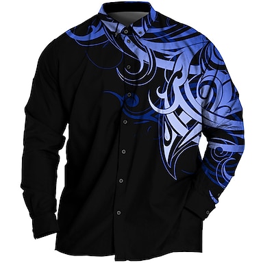 Herren Übergröße Hemd Groß und hoch Grafikdrucke Umlegekragen Knöpfe Langarm Frühling & Sommer Sport Mode Streetwear Designer Outdoor Urlaub Oberteile