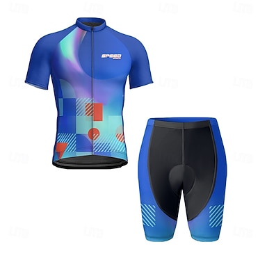 Herren Radtrikot mit Trägershorts Radtrikot-Set Kurzarm Mountainbike MTB Straßenradsport Sommer Blau Geometrisch Buchstaben & Zahlen Fahhrad Sonnenschutz UV-beständig 3D-Polster Schnelltrocknend