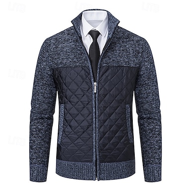 Herren Strickjacke Kurzer Pullover Reißverschluss-Pullover Strickpullover Gerippt Stricken Normale Oberteile Patchwork Tasche Einfach Stehkragen Mode Klassisch Urlaub Alltagskleidung Bekleidung