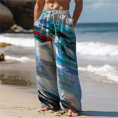 Herren Hawaiianisch Schrittweise Hosen Hose 3D-Druck Hose mit geradem Bein Mittlere Taillenlinie Elastischer Kordelzug in der Taille Outdoor Strasse Festtage Sommer Frühling Herbst entspannte Passform