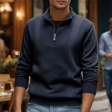 Herren Pullover Pullover mit Viertelreißverschluss Strickpullover Gerippt Stricken Normale Oberteile Gestrickt Einfach Halber Reißverschluss Mode Lässig Urlaub Alltagskleidung Bekleidung Herbst Winter