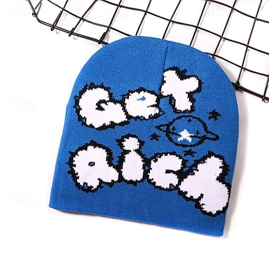 Herren Unisex Beanie Mütze Wollmützen 骷髅头毛线帽 Schwarz Blau Polyester Gemütlich Freizeitskleidung Ausgehen Mit Mustern
