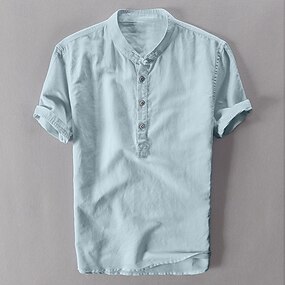 Herren Hemd mit Stehkragen Popover-Shirt Sommerhemd Strandbekleidung Lässiges Hemd Glatt Outdoor Festtage Weiß Blau Grün Grau Kurzarm Henley Frühling Sommer Bekleidung