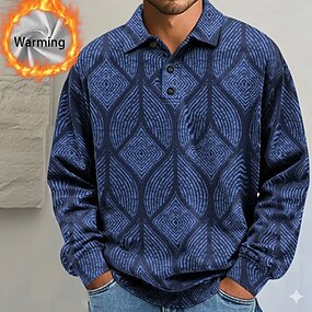 Herren Abstrakt Geometrisch Poloshirts Thermohemden Langarm Polo-Shirts Revers Lässig Athleisure Ferien Alltagskleidung 3D-Druck Herbst Winter Blau Purpur Braun