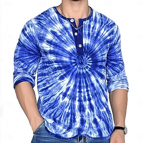 Herren Henley Hemd T-Shirt Henley Oberteil Langarm Batik Mode Designer Lässig Schnurbatik Farbblock Knöpfe Henley Lässig Täglich Outdoor Sommer Frühling Ganzjahres Blau Rote Marineblau Henley T-Shirt