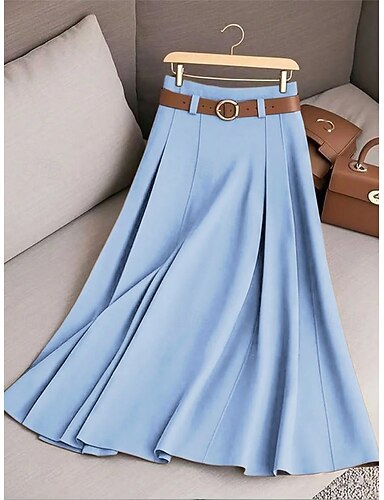 Damenrock Swing Arbeitsrock Langer Rock Maxirock Chiffon Unifarben Büro/Karriere Alltag Frühling&sommer chiffon elegant lang s