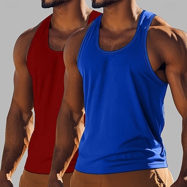 Herren Tank Top Weste Unterhemd Ärmelloses Shirt Ärmellos Rundhalsausschnitt Sommer Einfarbig Einfach Mode Klassisch Lässig 2 teilig Mehrfachpackung Straße Lässig Sport Blau+Hellblau Königsblau