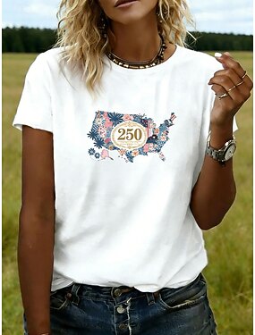 Amerikanischer Unabhängigkeitstag Damen T Shirt T-Shirt Druck Blumen Grafik Stilvoll Klassisch Lässig Kurzarm Rundhalsausschnitt Normale Oberteile Täglich Ausgehen Wochenende Blau Schwarz Weiß Rote