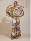 Dschungel-Wildparty-Maxikleid aus seidigem Satin