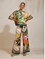Damen Blumen Lässig Alltagstauglich Magyarkragen Aprikose Unregelmäßiger Saum Oversize Drucken Dreiviertelarm Elegant Täglich Boot Frühling & Herbst Herbst Ganzjahresmode