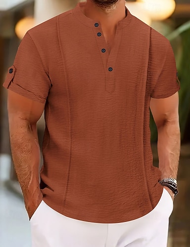 Herren Hemd Freizeithemd Knopfhemd Einfach Lässig Strand Weiß Marineblau Braun Armeegrün Kurzarm Henley Sommer Bekleidung Schnürung