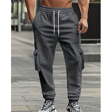 Herren Cargo-Jogginghose Jogginghose Hose Kordelzug Tasche Elastischer Bund Einfach Komfort Sport im Freien Täglich Mode Lässig Schwarz Weiß Mikroelastisch