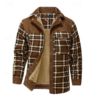 Herren Wintermantel Fleecejacke Freizeitjacke Lässig Täglich Thermowarm Tasche Button-Down Herbst Winter Karomuster Streetwear Täglich Stehkragen Regulär Rote Dunkelgrün Braun Armeegrün Dunkelblau