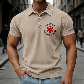 Herren Grafik Acid-Wash-Shirt 100% Baumwolle Kurzarm Polo-Shirts Revers Lässig Athleisure Tasche 3D-Druck Knöpfe Frühling & Sommer Blau Braun Grün
