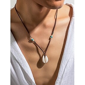 Boho-Halskette aus Kauri-Muschel für Herren – handgefertigter Anhänger aus Lederband mit Perlen, Strandsurfer-Stil, verstellbares Tribal-Halsband für den Sommer, Reisen und die Freizeit