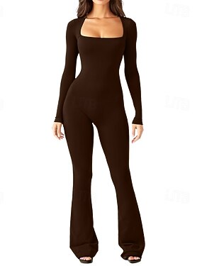 Damen Normal Overall Aktiv Einfarbig Langarm Weites Bein Quadrathals Täglich Urlaub Lässiger Schnitt Schwarz Wein Armeegrün Sommer