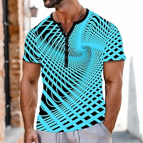 Herren Geometrisches Muster Abstrakt T Shirt Henley Hemd Kurzarm Sport Mode Designer Lässig Täglich Outdoor Sommer Ganzjahres Grau Grün Henley Henley T-Shirt