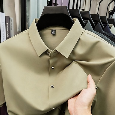 Herren Hemd Kleidhemd Bügelfreies Hemd Einfarbig Outdoor Arbeit Hellrosa Schwarz Weiß Champagner Kurzarm Umlegekragen Sommer Frühling Bekleidung Knöpfe