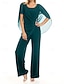Umhang Jumpsuit  Hosenanzug Kleid der Mutter der Braut Elegantes Einfaches Minimalistisches Rundhals Bodenklar Chiffon Kurzarm mit Kristallknöpfen