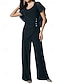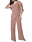 Overalls Brautmutterkleid Hochzeitsgast Elegant Einfach V Ausschnitt Asymmetrisch Chiffon Stretchstoff Halbarm mit Blume Einfarbig