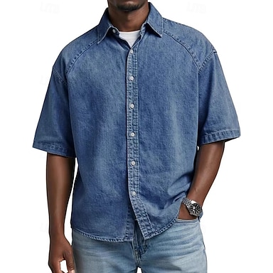 Herren Hemd Sommerhemd Freizeithemd Knopfhemd Cargohemd Denim Blue Schwarz Gelb Dunkel Blau Kaki Kurzarm Einfach Hemdkragen Urlaub Hawaiianisch Tasche Bekleidung 100% Baumwolle Mode Lässig Bequem