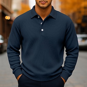Herren Polo Cordhemd Lässig Sport Revers Langarm Mode Basic Einfarbig Texture Knöpfe Herbst Frühling & Herbst Normale Passform Blau Dunkel Blau Grau Khaki Polo